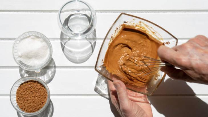 Bu tarifi hazır kahve kullanmadan yapmak için şekerle aynı miktarda demlenmiş kahve kullanın. Örneğin, 2 yemek kaşığı koyu demlenmiş kahve veya espresso ve 2 yemek kaşığı toz şeker kullanın. Şeker miktarını kahveyle orantılı tutmak, daha kabarık ve muhallebi kıvamında bir kıvam elde etmenize yardımcı olacaktır.
